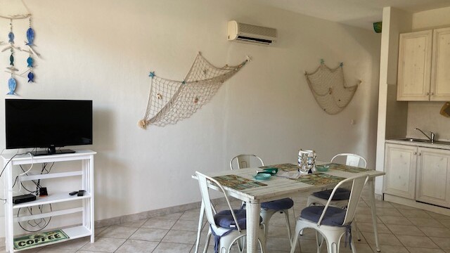 Apartmán v malé vesničce La Ciaccia v údolí Valledoria, pár kroků od písečné pláže a veškeré vybavenosti. Apartmán disponuje obývacím pokojem s kuchyní, koupelnou se záchodem, jsou zde dvě ložnice, přední terasa s posezením a zadní malá zahrádka. Apartmán je zcela vybaven, zařízen velmi vkusně a funkčně. Dva venkovní prostory na protilehlých stranách umožňují během dne pobyt ve stínu či na slunci dle potřeby. Apartmán je krásně prosluněný, prostor hlavní místnosti je výborně propojen s venkovním posezením. Nevýhodou je absence výhledu na moře, ta je ale vyvážená jeho blízkostí.