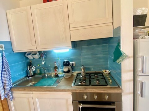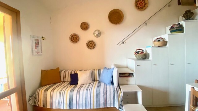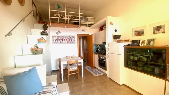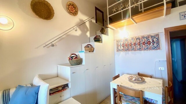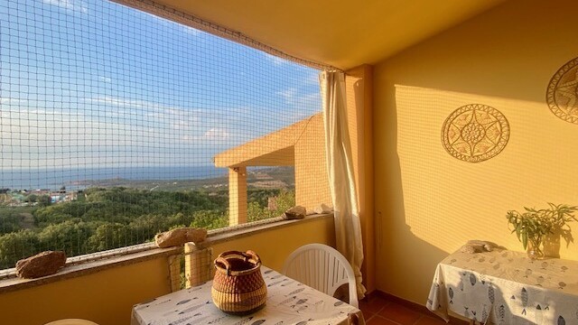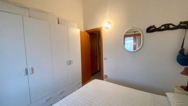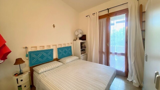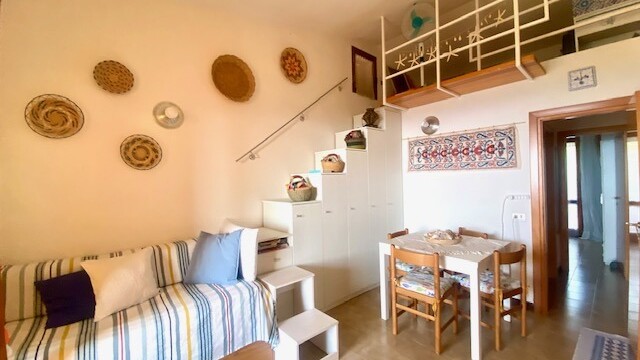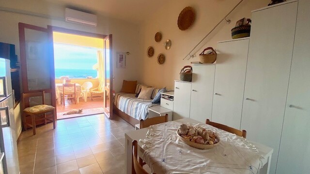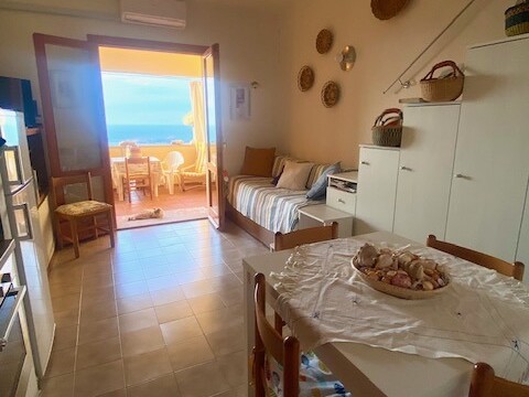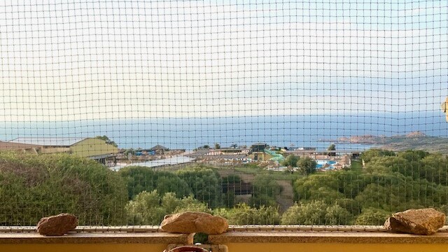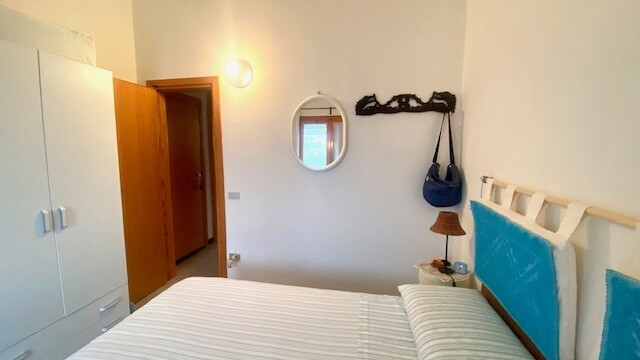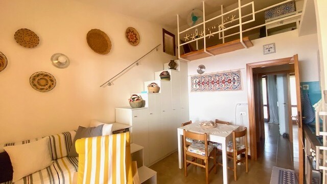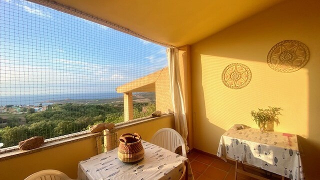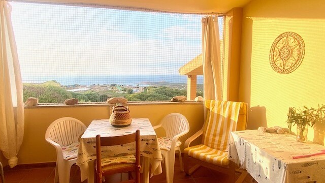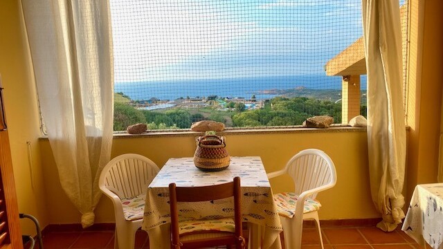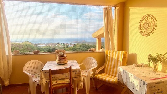 Tento apartmán s nádherným výhledem se nachází nad krásnými plážemi oblasti Isola rossa, v udržovaném komplexu uprostřed zeleně. Sestává z obývacího pokoje s kuchyní a podkrovním spaním, jedné ložnice a koupelny. Obývací pokoj je propojen s prostornou terasou, ze které se otevírá úchvatný výhled na moře. U ložnice se nachází malá terasa k sušení prádla apod. Síť na fotkách terasy je instalována, aby majitelům neutíkala kočka – lze snadno odmontovat. Apartmán je po nedávné rekonstrukci, vše nové a fukční, kompletně zařízené. K objektu náleží parkovací místo, je vybaven klimatizací k chlazení i topení. Součástí poplatku za správu kondominia je i spotřeba vody.
