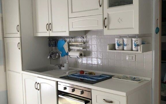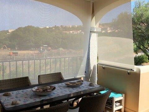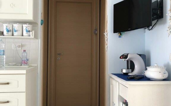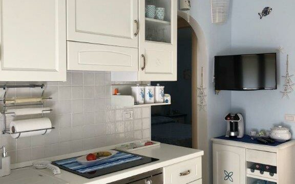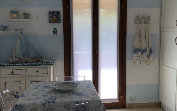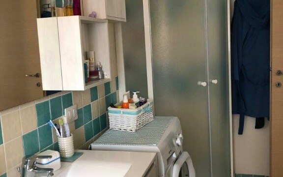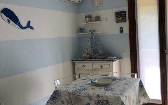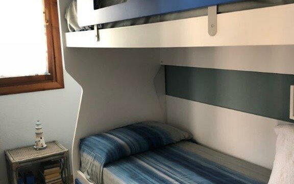 Apartmán se nachází v malém komplexu o 12ti jednotkách s bazénem a soukromým parkovištěm. Je složen z obývacího pokoje s kuchyní, který vede přímo na prostornou terasu s výhledem na moře. Dále je zde ložnice s manželskou postelí a dětský pokoj s patrovou postelí. V zadní části je pak k dispozici druhá terasa – ideální k sušení prádla atp. K objektu náleží parkovací místo.