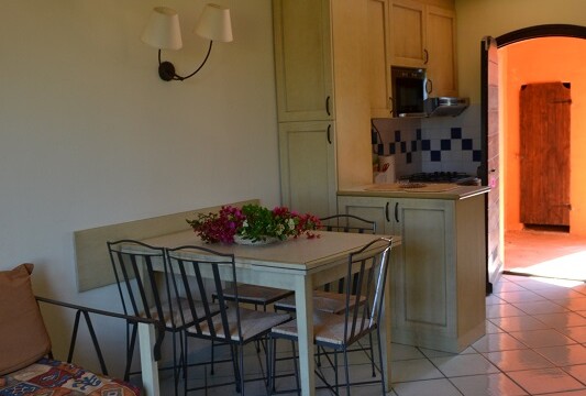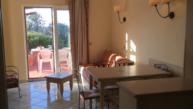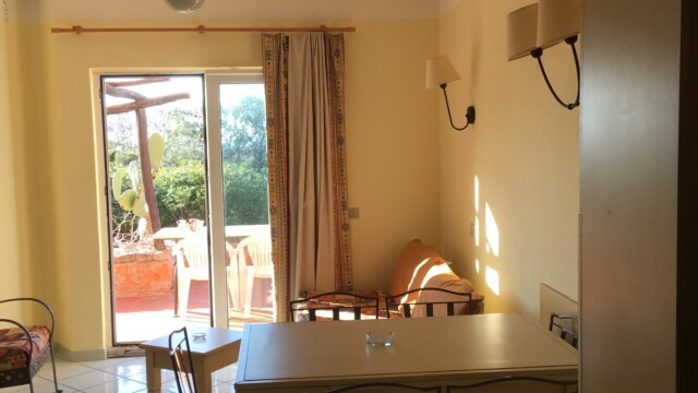 V půvabné turistické osadě u divokých pláží a nespočtu zákoutí a zároveň kousek od městečka Isola Rossa poskytující veškeré služby se nachází tento apartmán. Je složen s obývacího pokoje s kuchyní oddělenou pultem, dvou ložnic a koupelny. Hlavní ložnice je oddělena od obývacího pokoje posuvnými dveřmi, které umožňují propojení celého prostoru v jednu velkou místnost, což je praktické pro rodiny z dětmi. Obývací pokoj je propojen s prostornou terasou, která skýtá kouzelný výhled do přírody, na moře a západy slunce. Pohádkové prostředí pro letní dovolené.