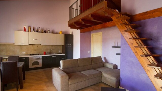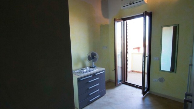 Ve vesničce La Ciaccia s krásným výhledem na moře a v dochůzí vzdálenosti od písečné pláže se nachází tento apartmán v prvním a zároveň posledním patře domu se zahrádkou v přízemí. Apartmán disponuje vstupem po schodišti společným s druhým sousedním apartmánem s českými majiteli, zde se nachází branka na vlastní prostornou terasu, oddělenou zídkou a zajišťující kompletní soukromí. Z terasy se vstupuje do prostorného obývacího pokoje s kuchyní, vysokým dřevěným stropem a schodištěm do mezonetové podkrovní místnosti. Dále je zde chodbička s koupelnou a vstupem do dvou pokojů, u jedné z ložnic je pak druhá koupelna. V zadní části se nachází druhá terasa s výhledem na moře propojená s ložnicemi. V přízemí domu se pak dále nachází vlastní parkovací místo za branou, venkovní sprcha a zahrádka s posezením a grilem.  Apartmán je ve výborném stavu a vybaven moderně kvalitními materiály.