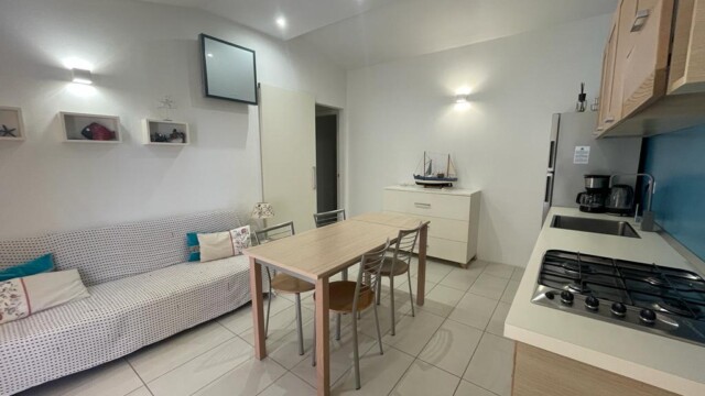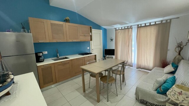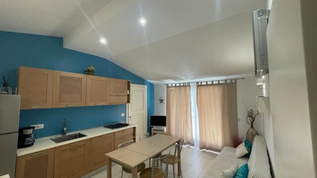 Nový, moderně zařízený domek se zahrádkou v malebném komplexu s bazénem a výhledem na moře. Skládá se z obývacího pokoje s kuchyní, manželské ložnice, dětského pokojíku a jedné koupelny a úklidové komory. Na zahrádce se nachází zděný gril a krytá veranda k posezení. Domek je zařízen moderním kvalitním vybavením, klimatizací a vším potřebným k okamžitému používání. K objektu náleží parkovací místo.