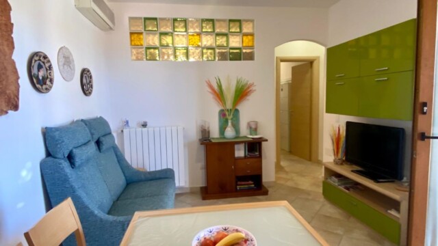Tento apartmán se nachází v klidné okrajové části vinařské vesničky Mudizza. Hlavní předností je udržovaná zahrádka s krásným výhledem na moře, vybavená venkovní kuchyní, grilem, sprchou a krytým posezením. Dispozičně je složen z obývacího pokoje s kuchyní, koupelny se záchodem a dvou ložnic. Vesnička Mudizza nabýzí základní vybavenost po celý rok – obchod, restaurace, bary, školka… Apartmán je plně vybaven k celoročnímu bydlení, součástí je parkovací místo. Komplex je nedávno vystavěn, vše je v perfektním stavu.