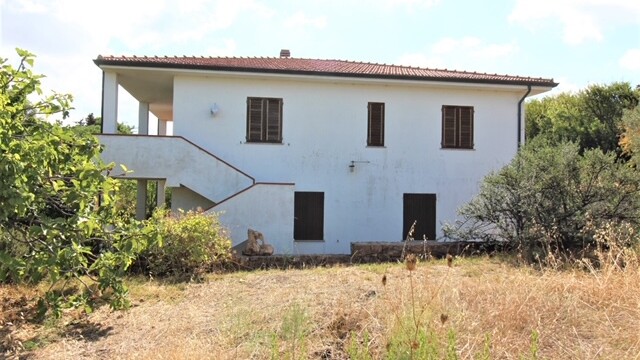 Pro ty, kdo potřebují prostor, soukromí, zahradu… Tato vila se nachází ve vesničce Mudizza cca 2km od pláže, v klidné boční uličce, samostatně stojící v zahradě. V přízemí je v tuto chvíli 120mq volný prostor využívaný jako sklad a garáž, s možností vybudovat samostatný apartmán. V prvním patře se nachází apartmán 120mq – obývací pokoj, jídelna s krbem (odděleno pouze pultem), kuchyňka v malé boční místnosti (k výměně). Dále je zde chodba vedoucí do dvou pokojů, dvou koupelen a komory. Hlavní obývací místnost je propojena s velkou terasou, ložnice disponuje balkonem. Z domu je výhled na moře a do okolních kopců.V zahradě cca 2.000mq se nachází spousta vzrostlých ovocných stromů a půda vhodná k pěstování. Dům je ideální pro dlouhodobé pobyty, skýtá velký potenciál k případnému rozvoji.